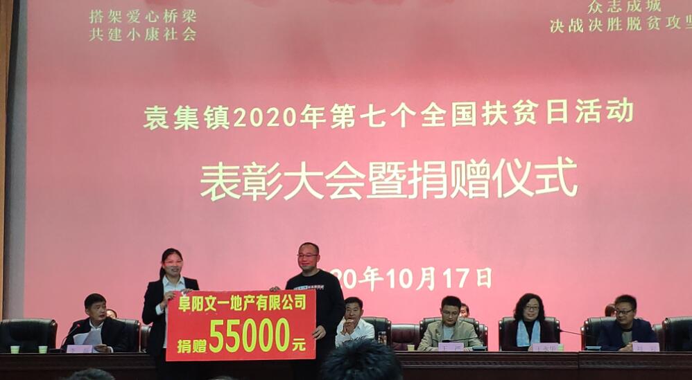 为巩固“真脱贫”攻坚成果,开创巩固脱贫攻坚成果新局面,扶贫日当天,“袁集镇2020年第七个全国扶贫日活动表彰大会暨捐赠仪式”在阜合产业园园区顺利举行,文一地产作为扶贫捐赠企事业单位出席会议,并被授予“扶贫助困·优秀企业”荣誉称号。