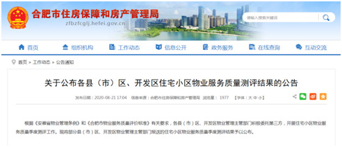 近日,合肥市住房保障和房产管理局官方公布合肥市各县(市)区、开发区共计2550个住宅小区的物业服务质量测评结果,文一物业所管理的多个小区综合得分位居排名前列,优质服务得到权威肯定。