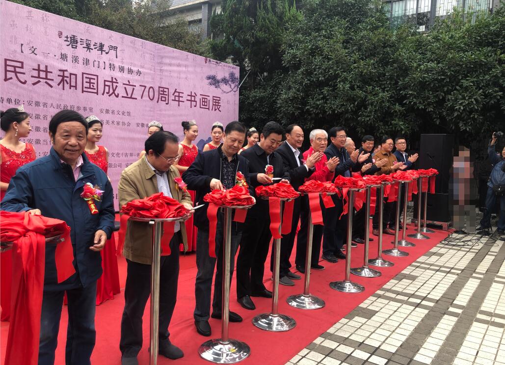 10月11日,由安徽省诗书画研究会主办,安徽当代书画院承办,安徽省书法家、美术家协会、文一·塘溪津门特别协办的“庆祝中华人民共和国成立70周年书画展”于合肥久留米友好美术馆隆重开幕!