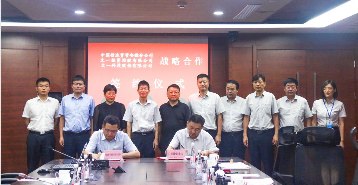 8月7日,文一投资控股有限公司、文一科技股份有限公司与中国信达资产管理资产管理股份有限公司安徽分公司全面战略合作签约仪式在文一集团合肥总部举行。