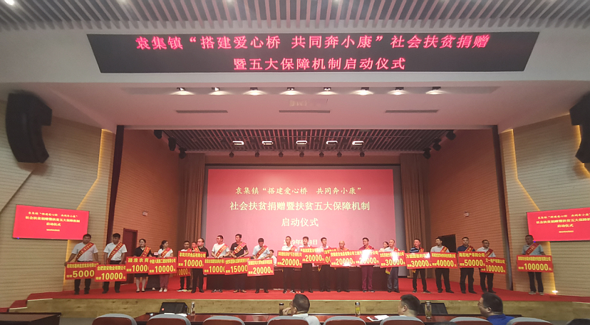 8月8日,阜合产业园园区社会事业局联合袁集镇在园区文化中心举行社会扶贫捐赠活动。文一地产阜阳分公司向袁集镇捐赠10万元善款,支持管委会脱贫攻坚工作的开展,并作为扶贫捐赠企事业单位出席会议。
