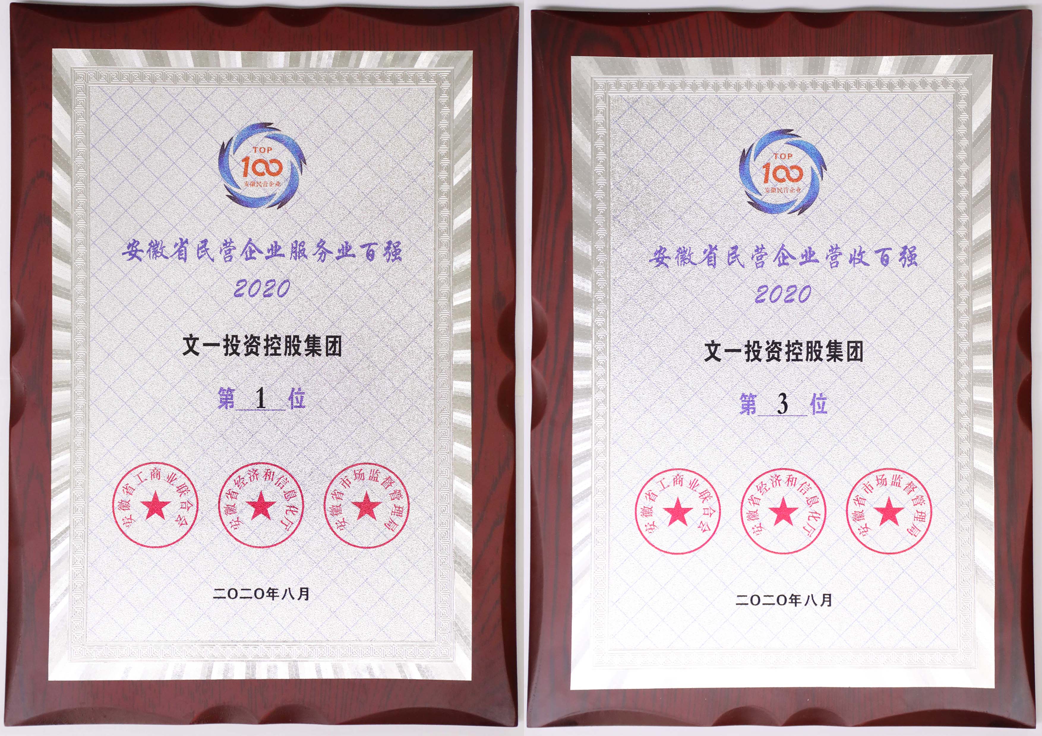 文一集团荣登2019合肥企业50强排行榜第5名、2019合肥服务业企业20强排行榜第2名,