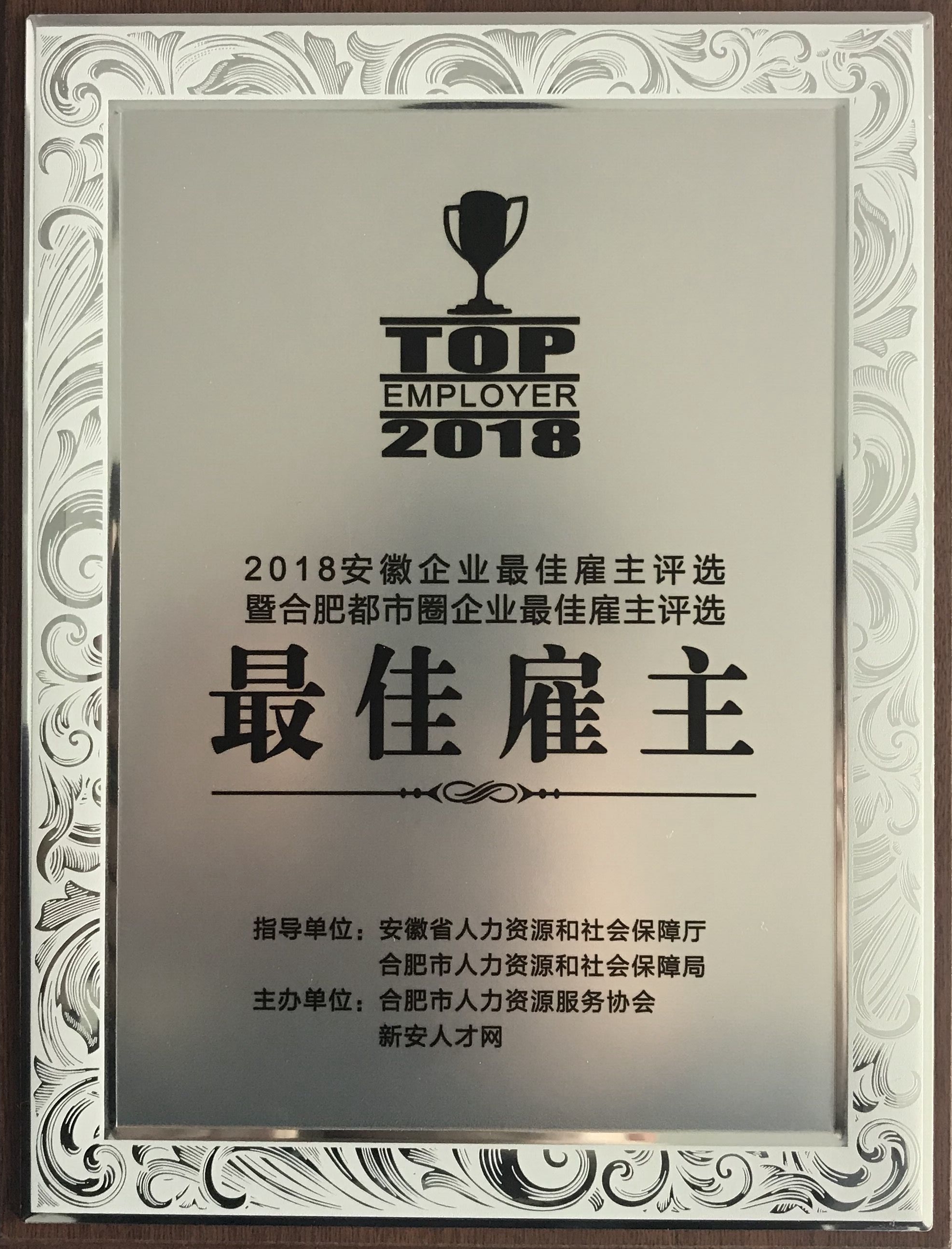 2月24日,文一集团再次荣膺“2018安徽企业最佳雇主”称号,这也是该评选活动2011年启
