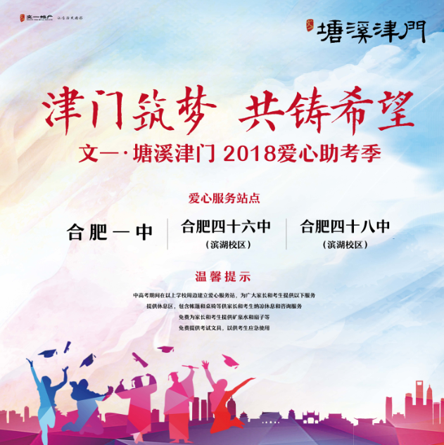 6月7日-8日,文一·豪门金地心系考生与家长,分别在合肥四十六中(滨湖西藏路与紫云路交口)