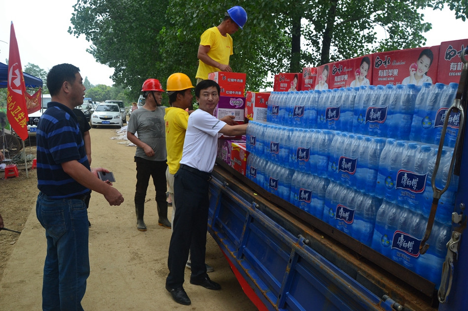7月10日下午,文一集团肥西置业爱心赈灾分队在总经理朱家斌的带领下,满载一车救援生活物资,