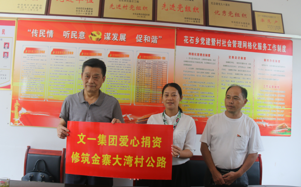 7月20日,文一集团党委书记带领企业爱心分队跟随合肥市工商联前往金寨县花石乡大湾村捐资修建